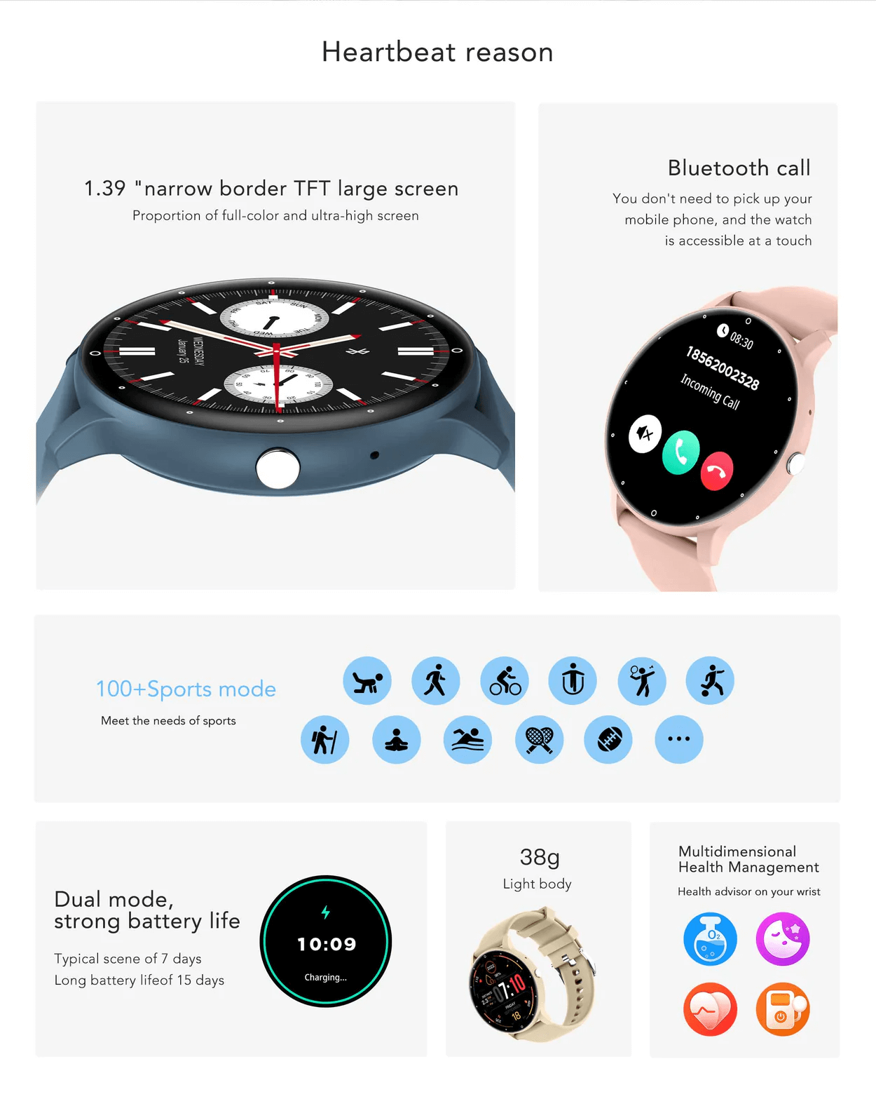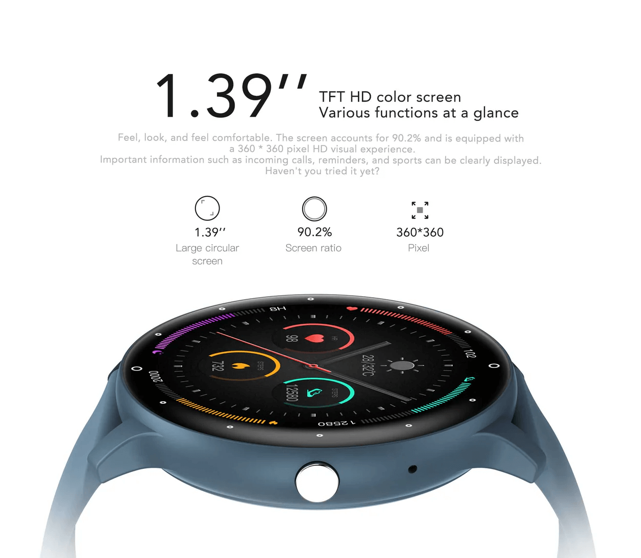 | Smart Assisante: | Alarm Clock Always On Screen Clock Bluetooth Call Calculator Calendar Call & Message Notification Find Your Watch Find Phone Flashlight Phone Camera Control Voice Assistant Wallpaper Weather Push |