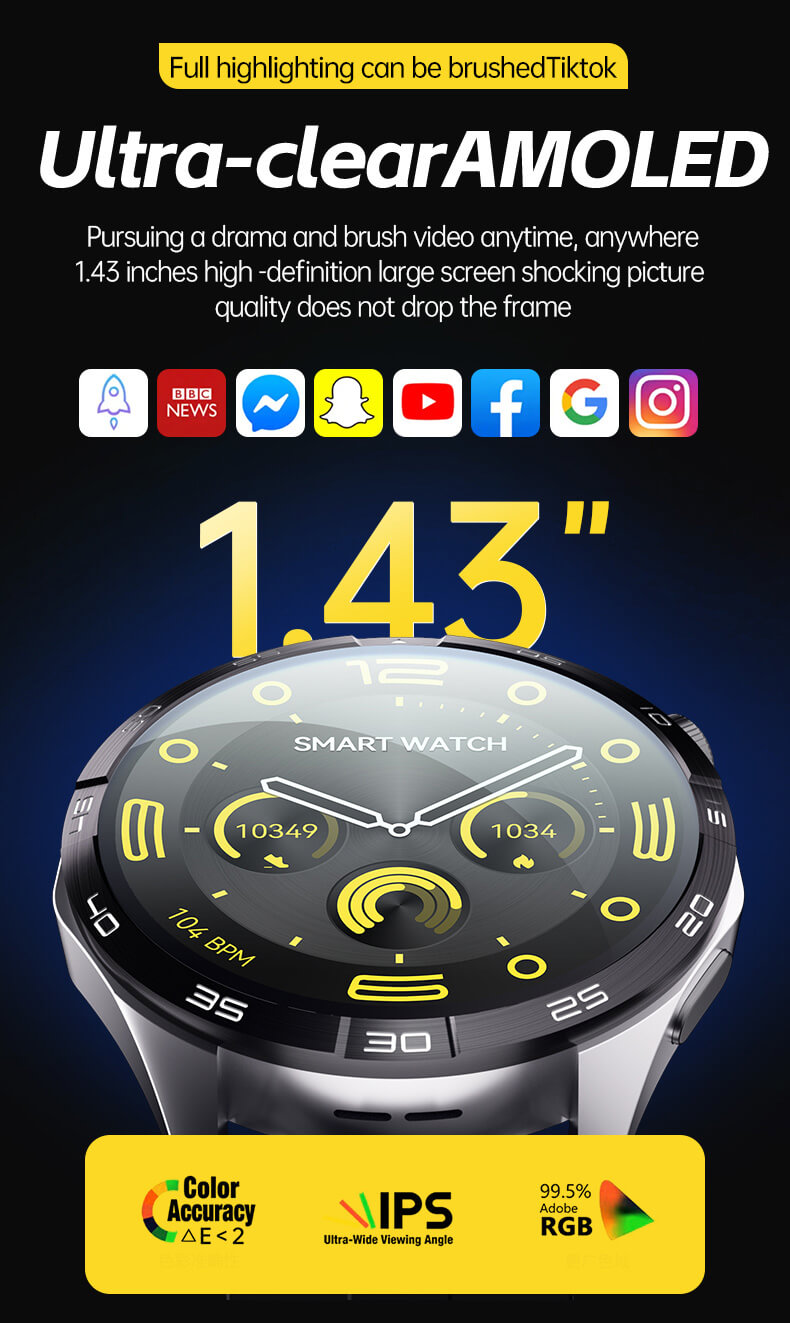 | Smart Assisante: | Alarm Clock Always On Screen Clock Bluetooth Call Calculator Calendar Call & Message Notification Find Your Watch Find Phone Flashlight Phone Camera Control Voice Assistant Wallpaper Weather Push |
