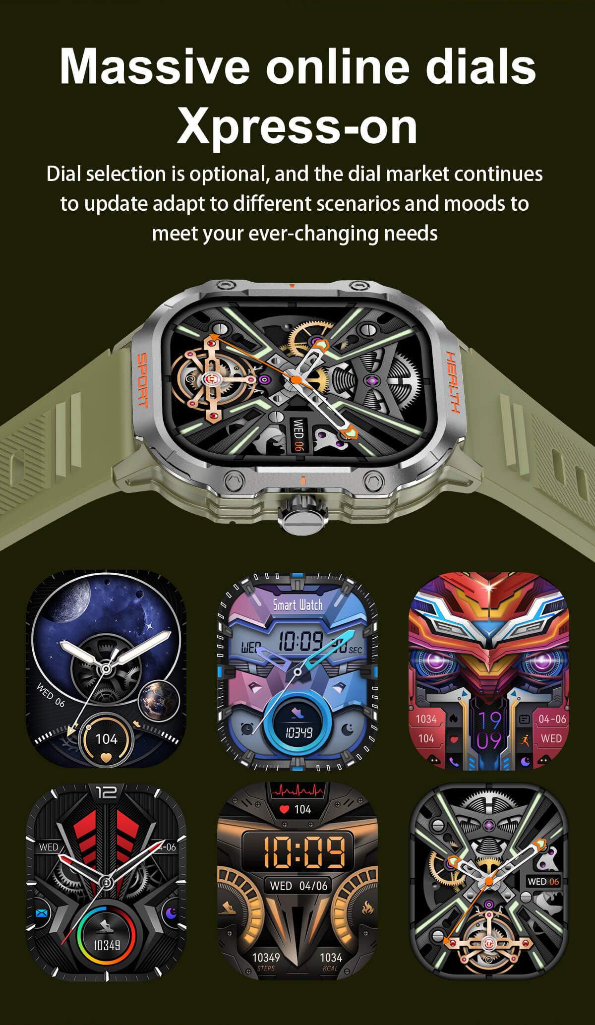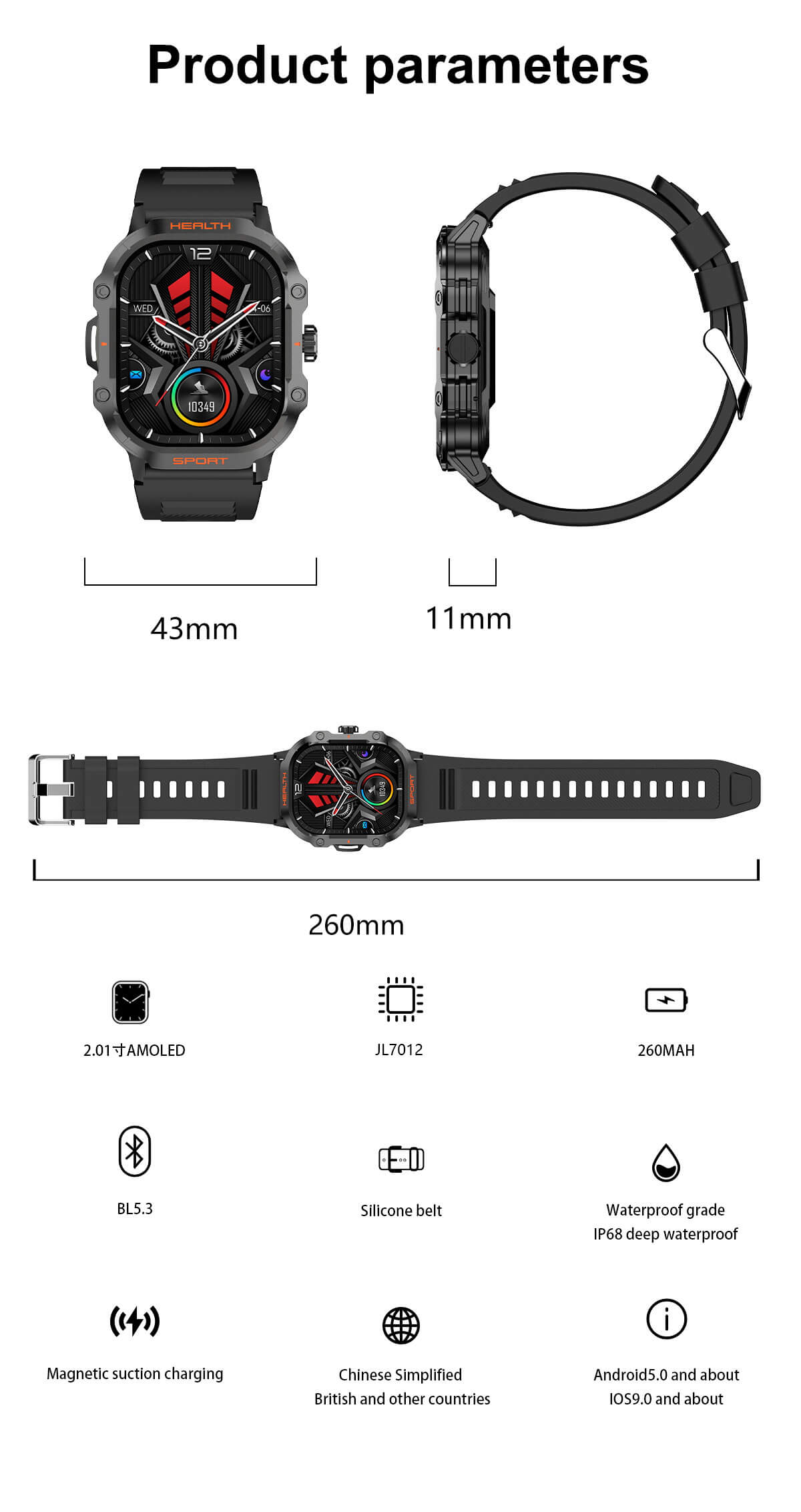 | Smart Assisante: | Alarm Clock Always On Screen Clock Bluetooth Call Calculator Calendar Call & Message Notification Find Your Watch Find Phone Flashlight Phone Camera Control Voice Assistant Wallpaper Weather Push |
